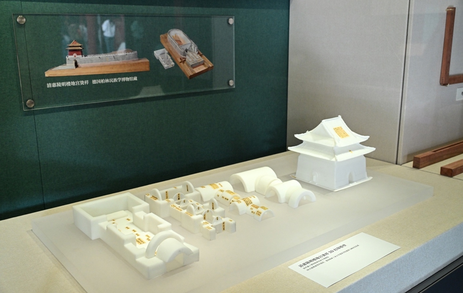 故宫博物院所藏“普祥峪地面、地宫建筑烫样”,是清慈安太后的陵寝模型,保存相对完好,仿佛仍带着当年呈送御览时的庄重与审慎。而一件根据德国柏林工业大学提供的3D扫描数据打印的“清惠陵明楼地宫模型”,则以当代科技与传统智慧对话的方式,惊艳亮相。其每一个构件皆可拆卸,清晰揭示了陵寝建筑的内部结构与逻辑奥秘。