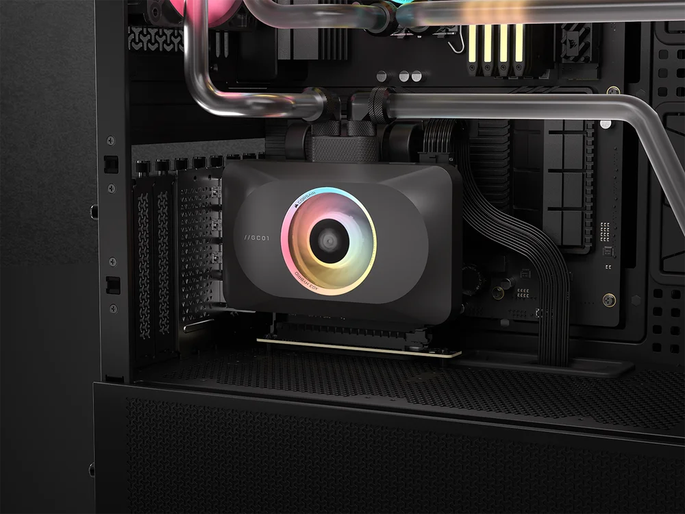 XG3 RGB HYBRID 则是一款面向 RTX 5080 / 5070 Ti / 5070 显卡的广泛兼容冷头(不支持技嘉显卡)。其采用“风水混合”设计,底部冷板照顾到 GPU 核心与显存,顶部的 ARGB 风扇则改善 PCB 和 VRM 的散热。